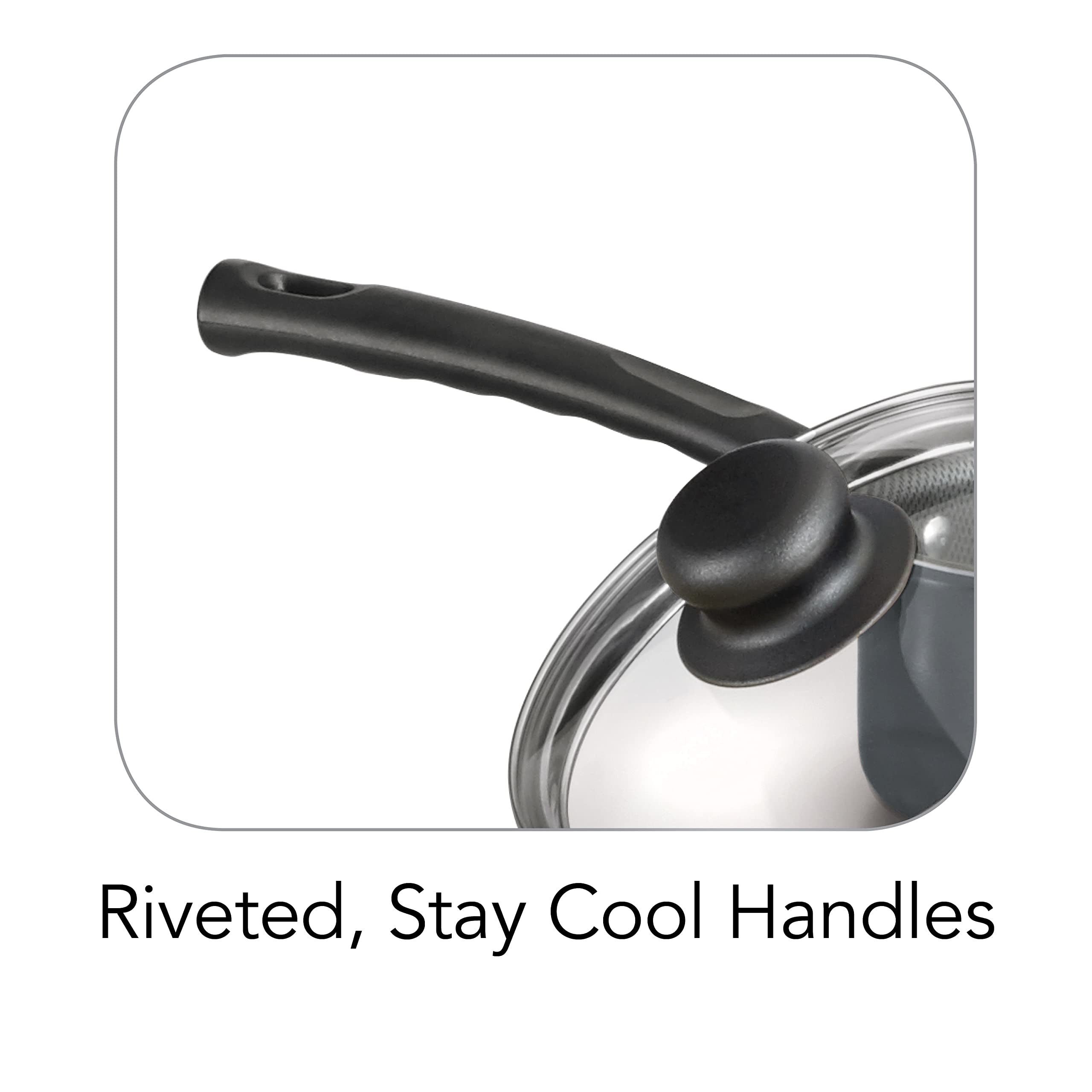 Heat- and shatter-resistant tempered glass lids allow easy monitoring of cooking progress10-piece nonstick cookware set is dishwasher safe